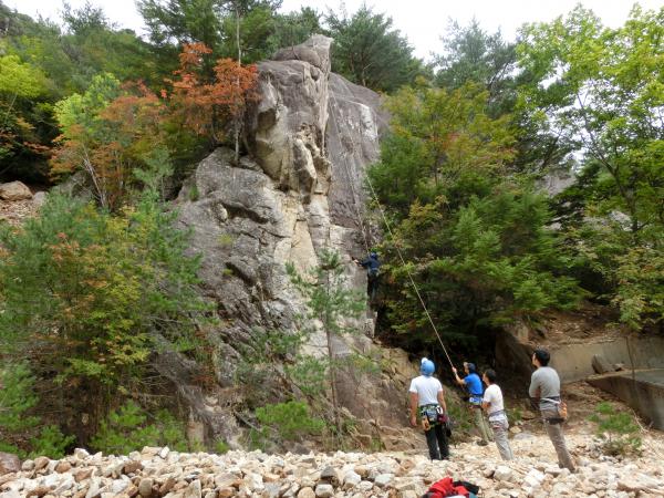 関東店舗合同企画 川上村、小川山キャンプ2日目 岩登り左岸スラブ