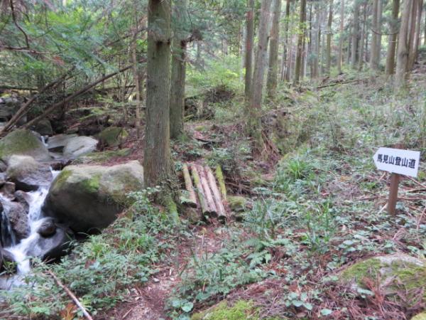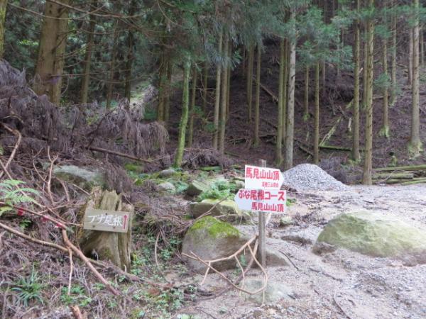- 馬見山キャンプ村上部の登山口(15分)風穴(7分)寄添い岩(8分)ブナ尾根コース分岐(50分)馬見山山頂(30分)宇土浦越(35分)林道出会(5分)馬見山キャンプ村上部の登山口 *歩行時間のみ