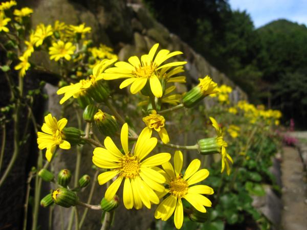 和田寺本堂ではまだアジサイが咲いていたり、ツワブキの花が植えられていました。