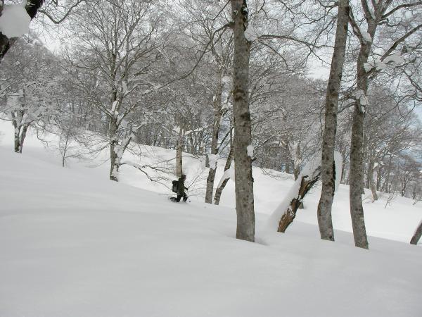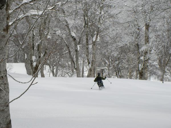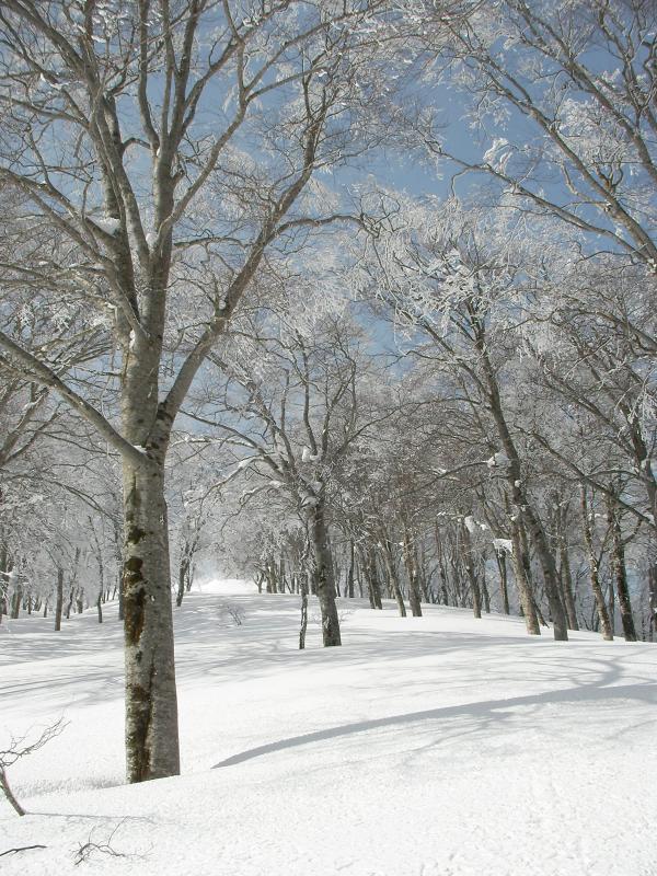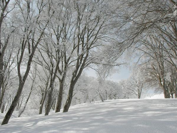 長野県内でも豪雪地帯と言われる飯山の山「鍋倉山」に行って来ました。ブナの巨木を縫うようにパウダーを楽しみました。樹齢400年と言われる「森太郎」が有名ですが、滑りに熱中し過ぎて、発見できませんでした・・・。山頂からの展望は素晴らしく360度パノラマの景色を堪能できます。日本海や火打・妙高・黒姫山などバッチリ見渡せるとてもいい山でした。帰りは戸狩温泉に入りすっきりしました。