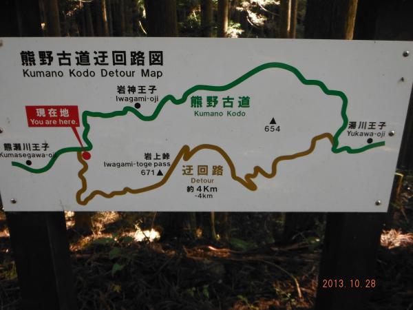 古道歩きはゆったりと歩きたかったのですが、事情もあり少し急ぎ気味であるきました。牛馬童子から本宮までは25km以上あるので体力は必要です。特に迂回路は山の中を歩きますので結構ハードです。発心門からは観光客も多かったですが、そこまではそれほど人に会いませんでした。しかし、少ないながらも出会った人はほとんどが外国人の参詣者で、さすが世界遺産だと実感しました。このコースは舗装道もありますが、起伏のある山道も歩きますので、靴はミッドカットシューズが安心です。