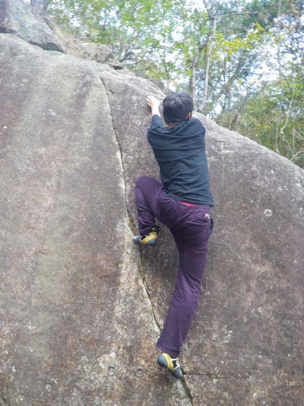 - 朝方濡れていた岩も日が射すと乾いてフリクションがよく効き快適。