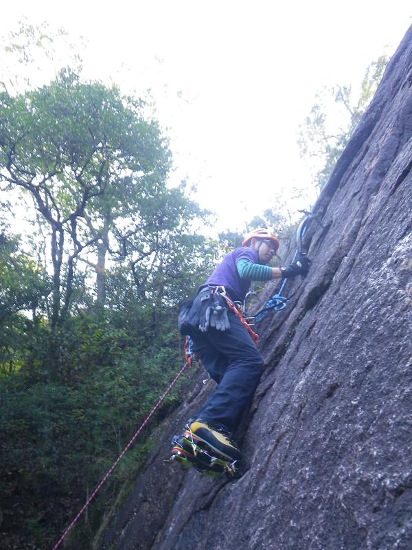 ここ南山は人生初の岩登りをした所で、当時はクライミングシューズなんてものは一般的でなく普通の登山靴で登っていました。岩場のグレードは高くないのでそれで問題なくのぼれていました。 この岩場はアルパイン志向の方たちの絶好のトレーニング場としてしたしまれています。