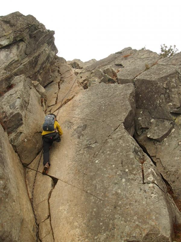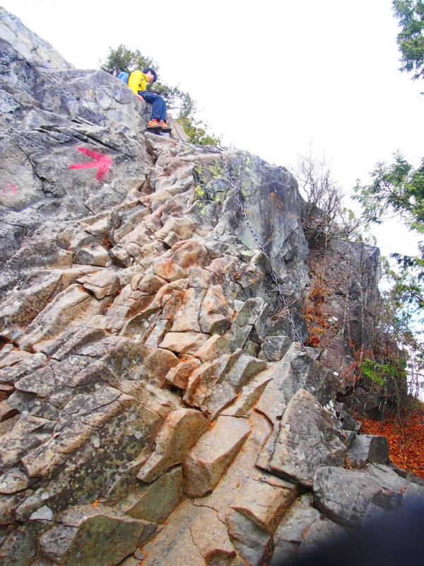 2か所目はクラックに沿って鎖がついてます。隙間に手やつま先をを突っ込めば登りやすいです。