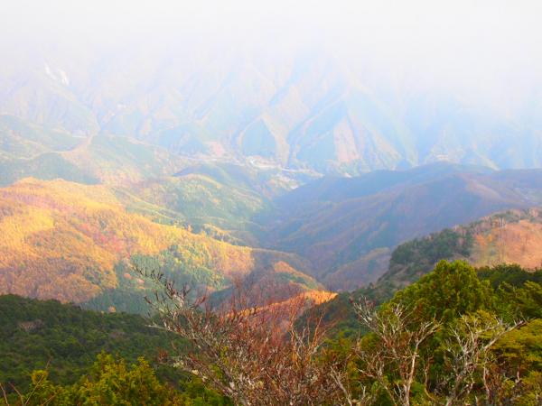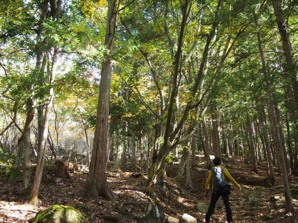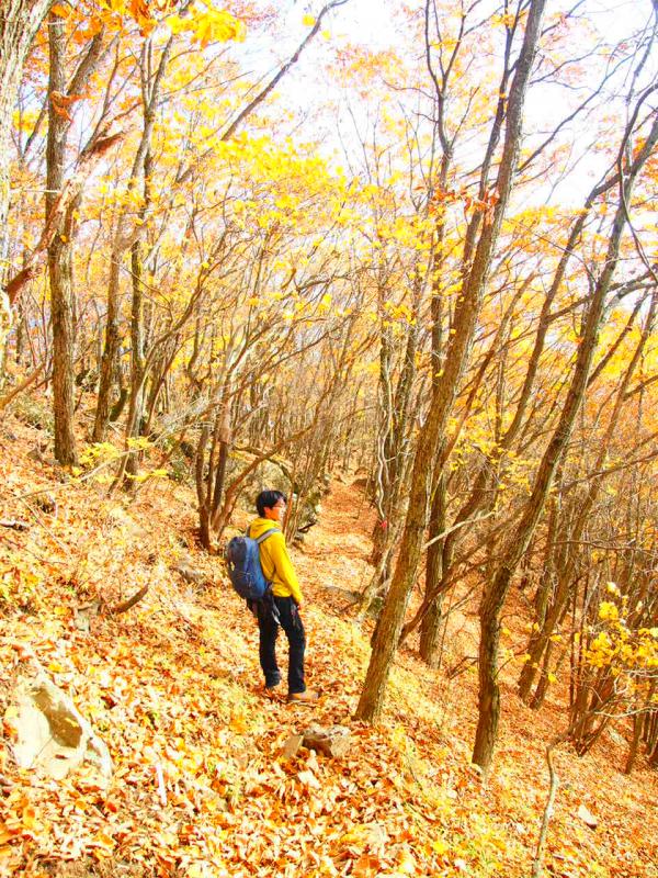 道満尾根は真っ黄色に染まっていて、落ち葉を蹴散らしながら下りました。