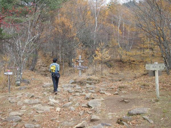 - 登山口から国師ヶ原まではやや急なをジグザグに登る。途中3回林道と交差します。