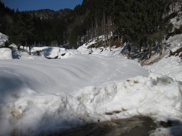 名前の通り廃村になった場所を目指す人気のコースですが、冬季は積雪が多く(豪雪で廃村になっただけに…)立ち入る人も少ないようです。