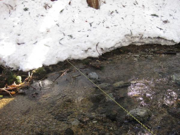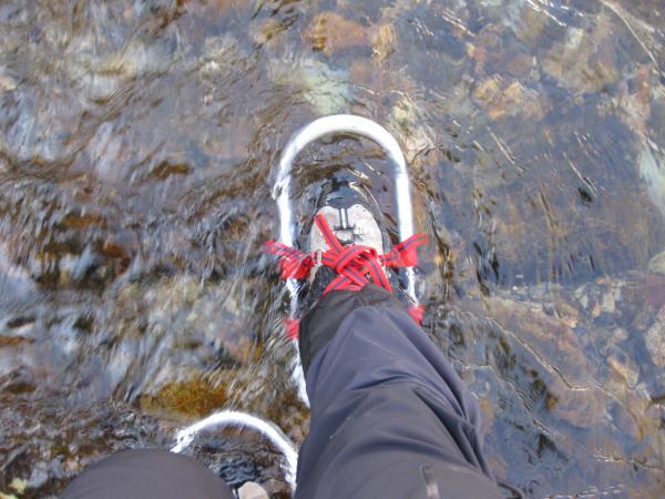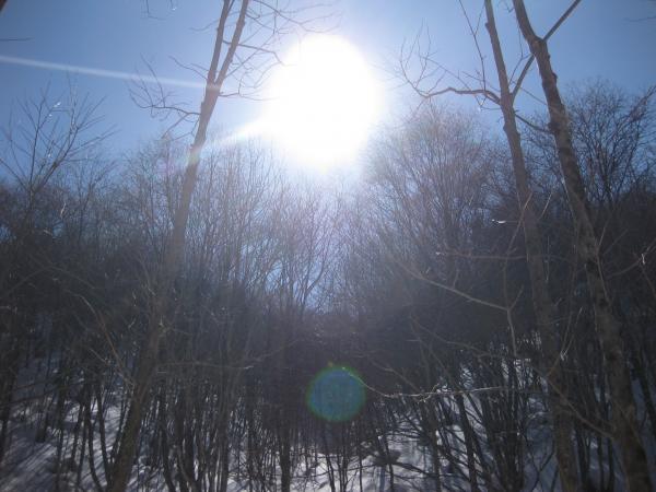 - このところの陽気でかなり腐った雪でした。つぼ足で膝下まで潜るのでワカンが活躍しました。