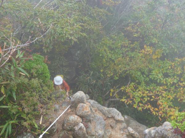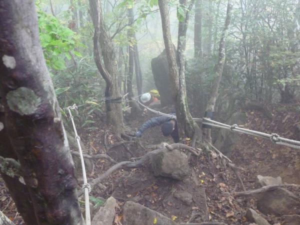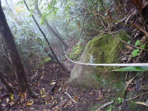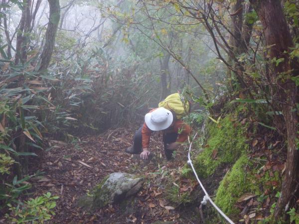 - 前日夜半より小雨が降っており、登山当日も一日中降ったり止んだりの状況で登山道は非常に滑り易い状況でした。