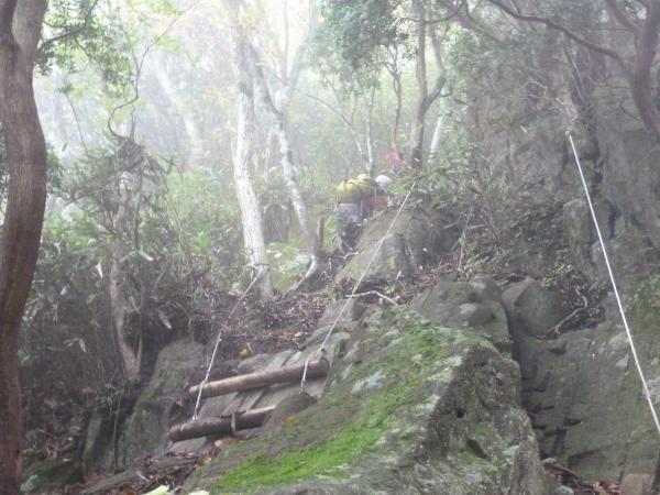 登山道には、ハイキングコースと表記されてるものの、急勾配でロープが各所に設置されてはいるものの、歩行時間の割には、体力のいるコースです。