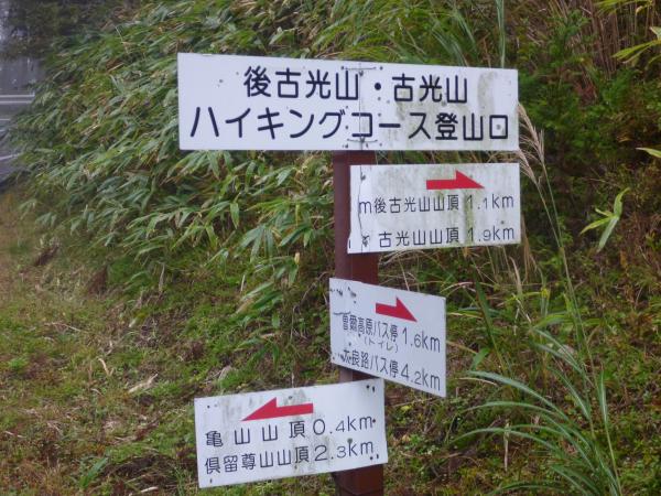 - 曽爾奥香落キャンプ場<90>古光山登山口<50>古光山南峰<20>古光山山頂<65>後古光山山頂<25>後古光山下山口<曽爾高原温泉