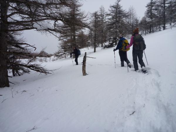 起伏も少なく、スノーシューでのワンデイハイキングには最適です。