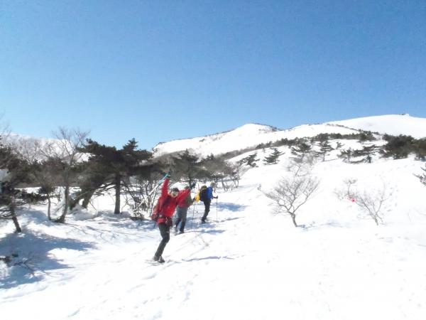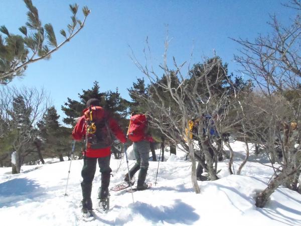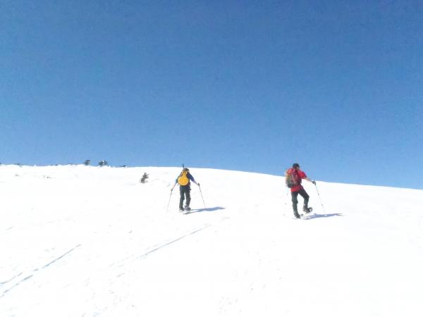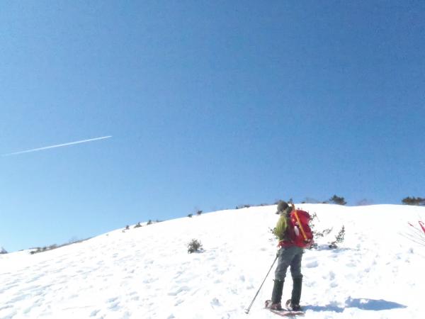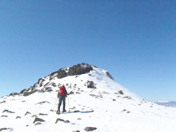 - スキー場のゴンドラ降り場から山頂直下までは、アイゼンよりもスノーシューやワカンの方が歩きやすいかなと感じました。