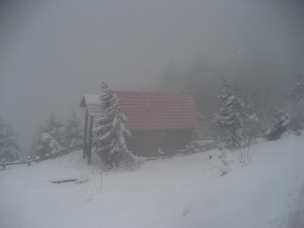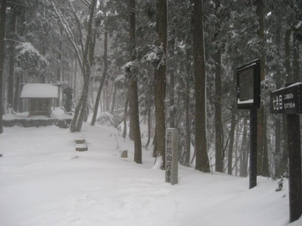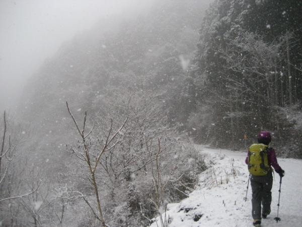 市街地では大雨で、諦めモードでとりあえず登山口へ向かうと急に雪に変わり、出発しました。本当に線を引いたかのように雨と雪で分かれていました。