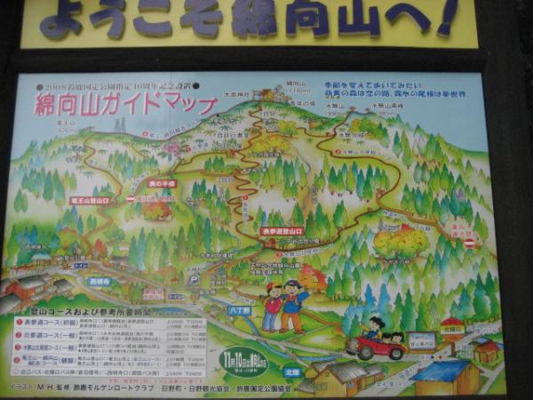 - 御幸橋駐車場(15分)ヒミズ谷出合小屋(110分)水無山(55分)綿向山(33分)行者コバ(60分)ヒミズ谷出合小屋(12分)御幸橋駐車場