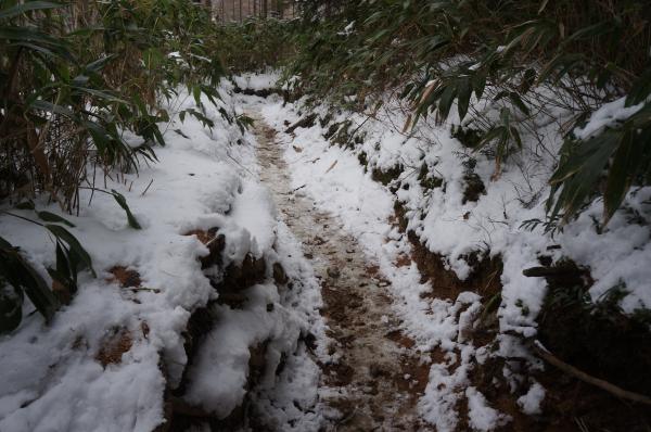 登山口から雪はあり、合戦小屋をすぎれば雪道のみ。