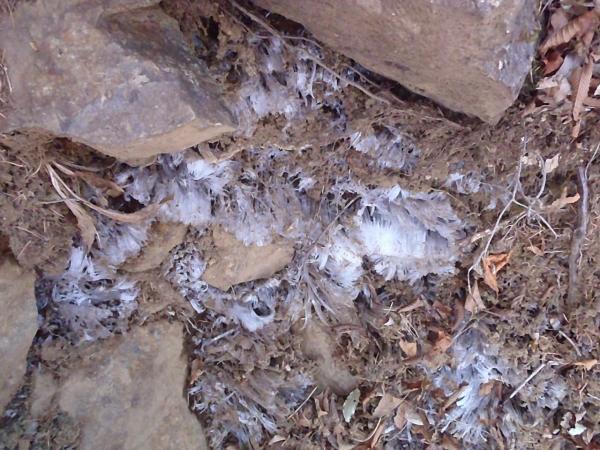- トンネル横の登山口から今倉山の山頂、そして赤岩までのコースは、広くてとても歩きやすい。ただ、この時期見られる霜柱が、いたるところに出来ていて、下りの際などは土の地面だと思って足を置くと、実は霜柱だったりして滑りやすい箇所がいくつもあったので、注意が必要。