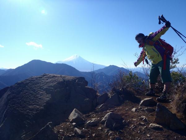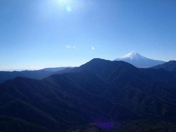 今倉山の2つのピークは展望はなかったですが、コースの途中所々と、赤岩からは、真っ白な富士山がきれいに見えました。特に、赤岩からは、隣の今倉山で遮っている以外は、南アルプスから八ヶ岳、相模原方面まで、ほぼ360度の大パノラマが楽しめます!!