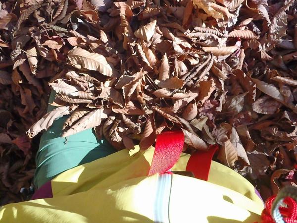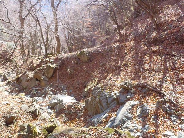 パラジマ沢のコースは、数回沢を横切りながら枯れ沢沿いを歩くコースです。この時期は大量の落ち葉があり、足元は見えず滑りやすいので注意が必要。(たまに落ち葉の落とし穴もあり)