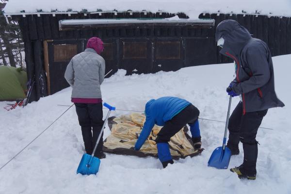 しかし、あまりの風の強さに、燕山荘まで行く予定だったんですが、合戦小屋で一泊することに。