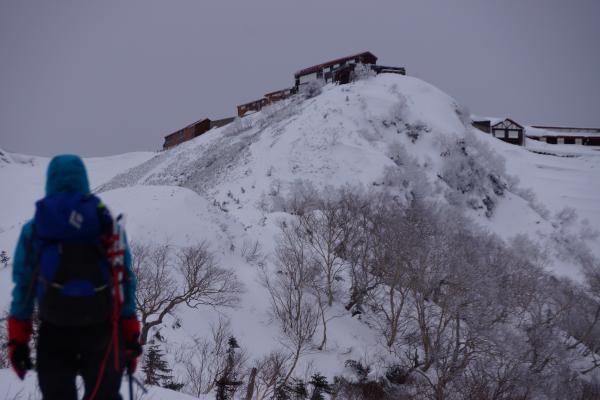 朝から小雪がチラチラ降っており、時折大変冷たい強風が吹いたりと、久しぶりの冬山気分を満喫。