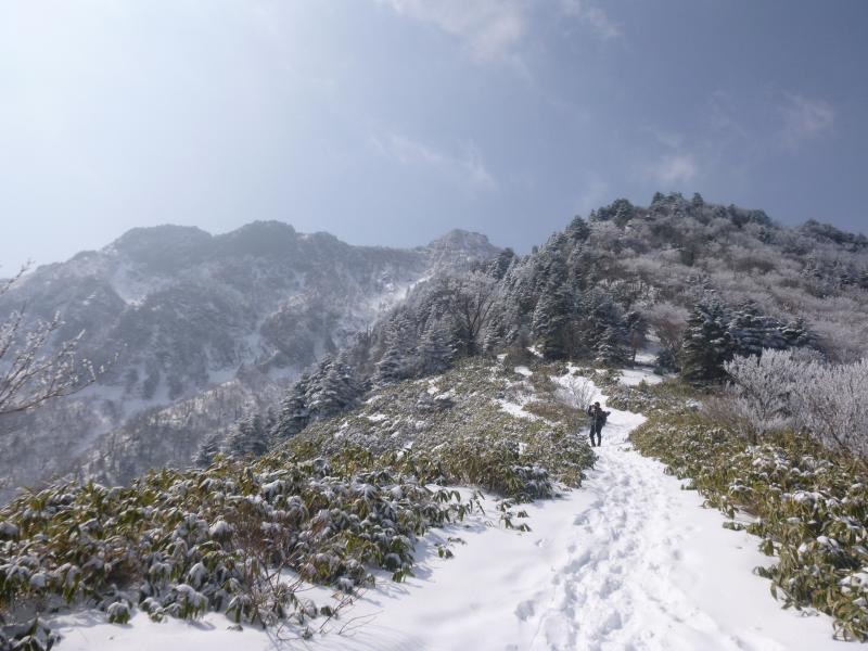 小屋から頂上までは雪も凍ってしまい、アイゼン(特に10本以上が楽に登れます)がない人には絶対に進めません。必携にて、ピッケルがあるとなお良いです。