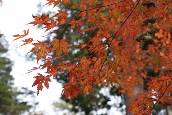 御岳山は杉も多いけれど広葉樹もあって、落ち葉を踏みながらのハイキング。