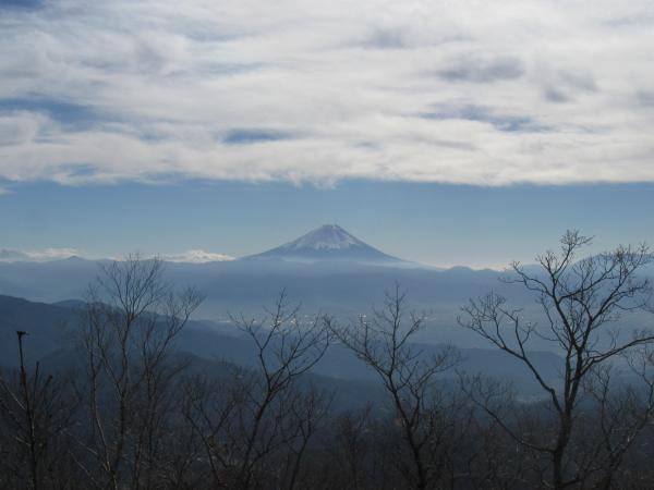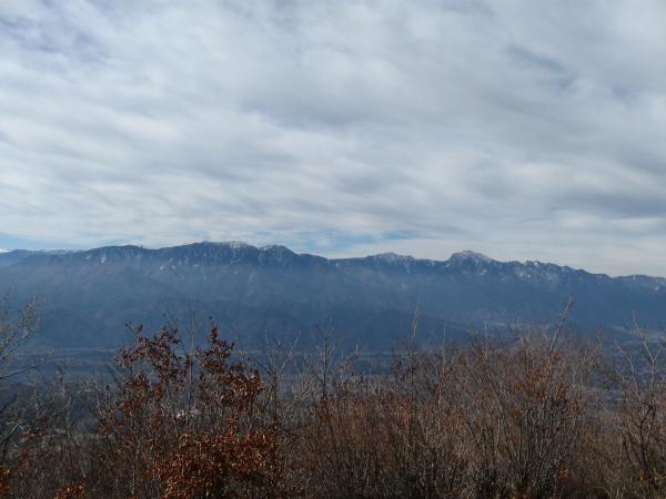 山頂から見える富士山や南アルプス、八ヶ岳の山頂は雪で白くなっていて、