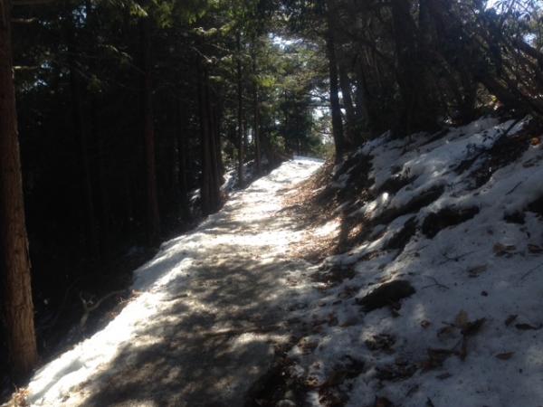 標高1.250-mを超えると雪はたっぷりです。6本爪以上のアイゼン必携です。