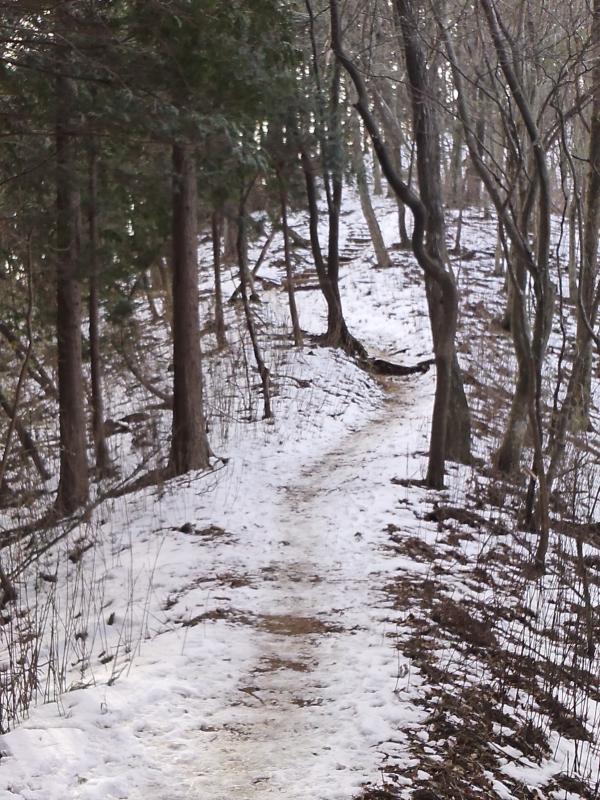 - 正丸峠から下の階段から古御岳までは残雪があり軽アイゼンがあったほうが登りやすいです。男坂・女坂の間の迂回路も、滑りやすいので軽アイゼンをつけて登ることをお勧めします。古御岳から吾野駅までの道はほとんど雪は残っていませんでした。道標もはっきりしていて迷うような箇所はありません。