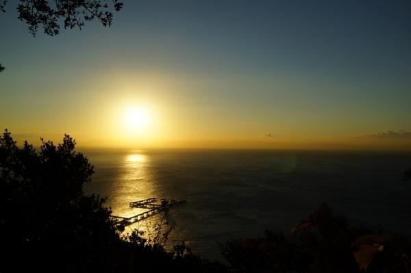 六甲山全縦を二日に分けて歩く第一日目です。早朝7時に須磨浦公園を出て新神戸駅までです。須磨の海に登る朝日を浴びながら登り、毎日登山の山を通過、歴史の深い太龍寺、国の重要文化財となっている布引五本松ダムを通り、夕日に茜に染まる神戸の町へ下ります。