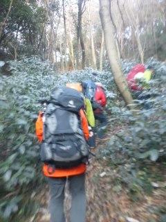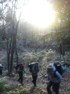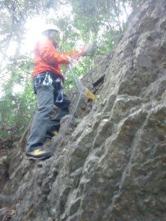 フィックスロープを使い皆で岩場の通過の練習を行いました。頭で理解したつもりでも