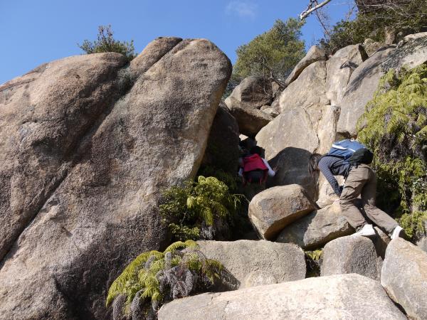 ・岩梯子から荒地山頂上直下までは大きな岩の連続で変化に富んだコースとなっています。通過時は慌てず慎重に行動しましょう。