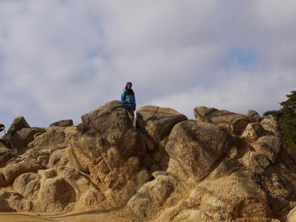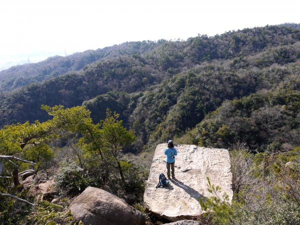 - 阪急芦屋川駅(15分)城山登山口(25分)城山(40分)岩梯子(10分)荒地山頂上(28分)風吹岩(60分)JR甲南山手駅