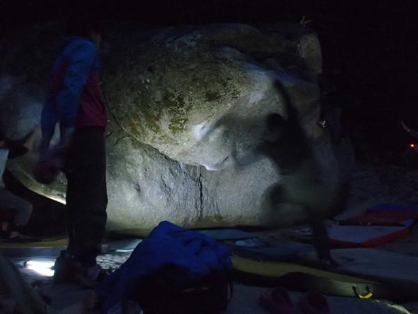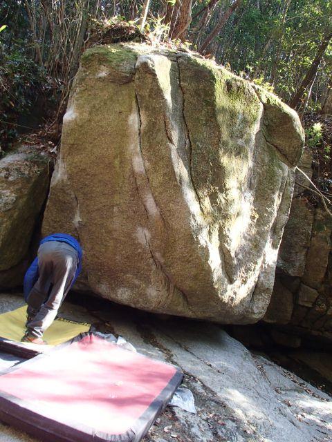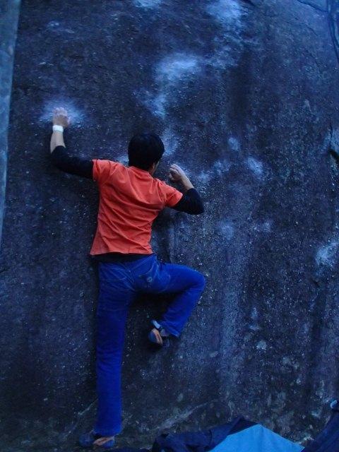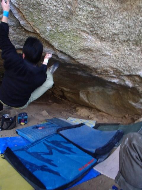 まず、1日目は高岸くん(以下つっきー)の『大和・3段』とスタッフI君の『縄文・初段』 の見物とちょっとお触り。そして、巴川エリアの『キリキリマイ・2段』は予想以上に面白いので少し熱が入ってしまい、やや指皮、左ひじにダメージ。『蛇の目』は見に行っただけで全く触らず。