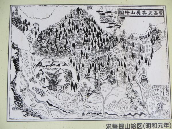 - 山麓駐車場(10分)三差路(10分)構ノ石門(10分)座主坊園地(10分)岩屋坊・安浄寺跡(15分)国玉神社中宮(15分)求菩提山山頂(上宮)(10分)胎蔵界護摩場跡(15分)大日窟(15分)阿弥陀窟(22分)行者帰りのルート登山口(3分)山麓駐車場 *歩行時間のみ