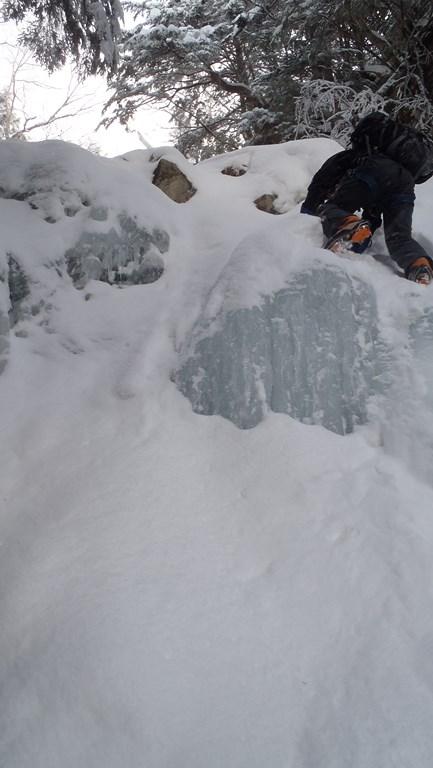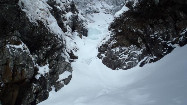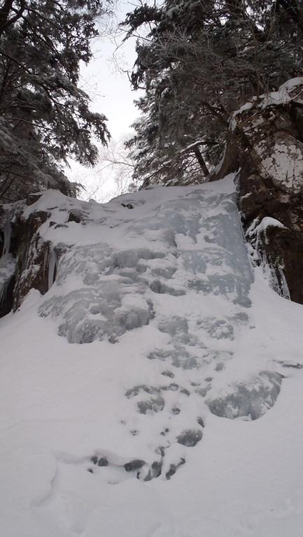 - 氷結状態は良好でしたが、入山数日前の降雪によりラッセルがかなりあったのと、強い冷え込みで、最後の大滝はパスして左手の尾根筋から御小屋尾根へ抜けました。スクリューは5,6本で良いとお思います。下部は流水が出ているところもあるので踏み抜きに注意してください。