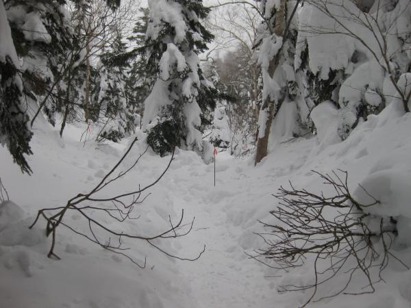 稜線はさすがの風雪でゴーグルとバラクラバは必須なお天気。