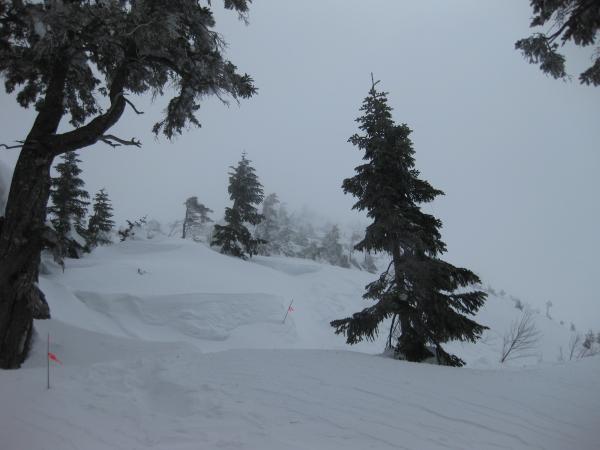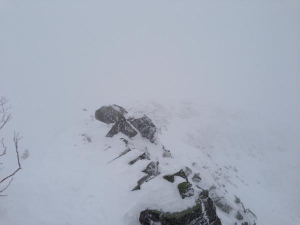 終始雲の中で視界も悪い上、風雪も強かったです。
