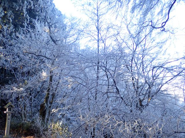 山頂へはあと15分ほどですが、段々と雪が多くなり、登山道はツルツルに凍るようになります。