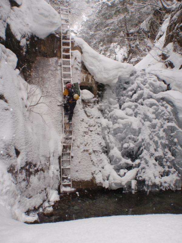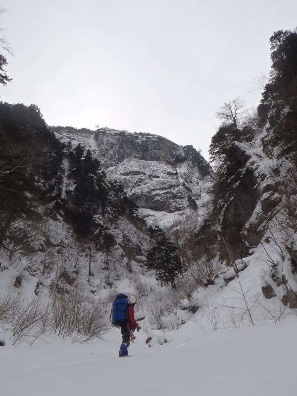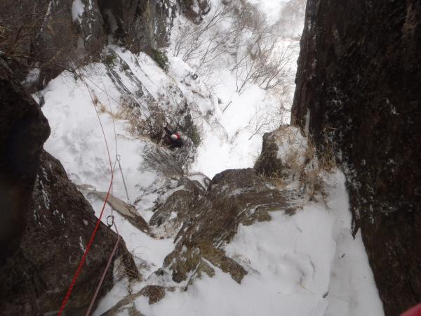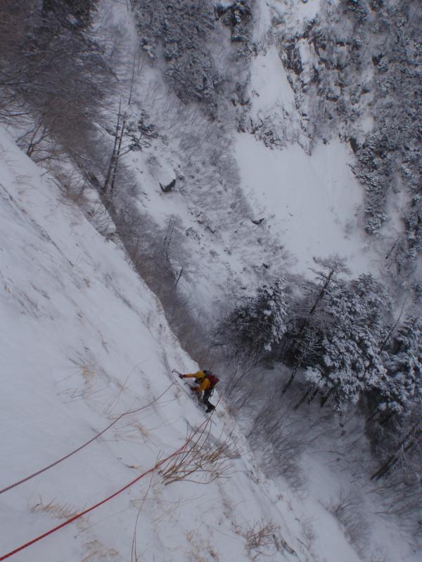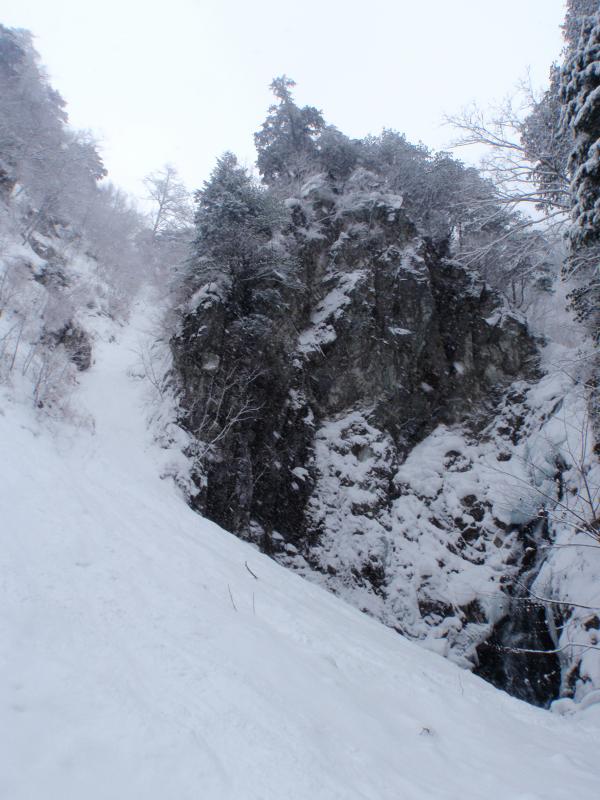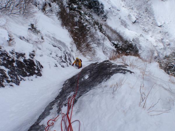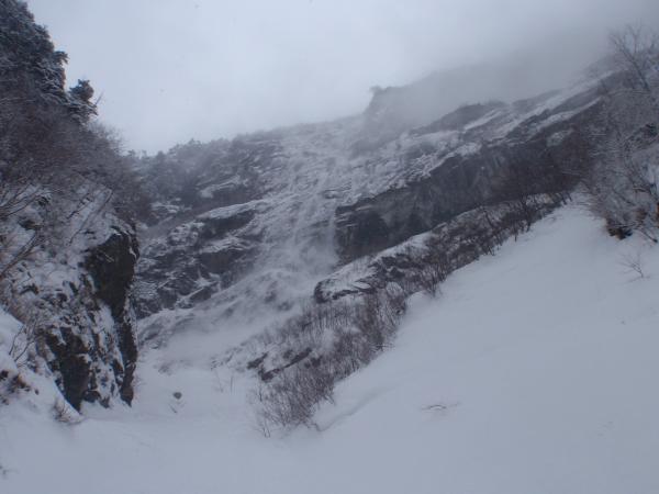 S字ルート付近は雪崩れの通り道ですが、氷が繋がれば素晴らしいルートになると思われます。
