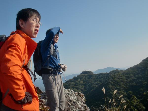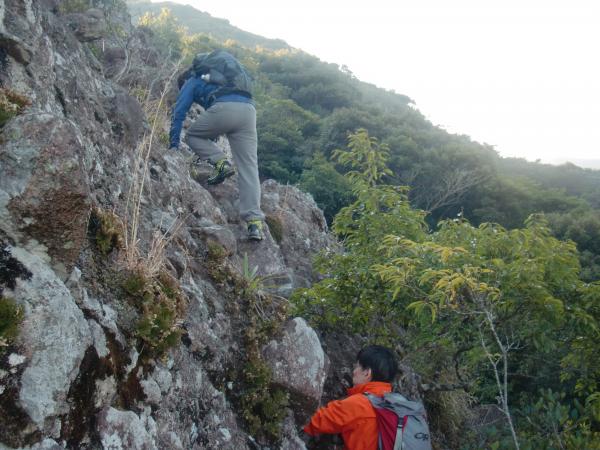お決まりの山頂での景色を満喫した後は『よし!!』っと気合を入れて山頂のある大岩をぐるっと巻き、新ルートへ。