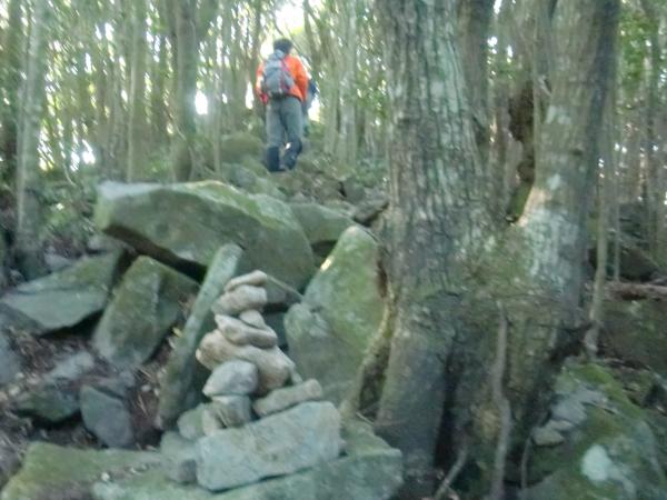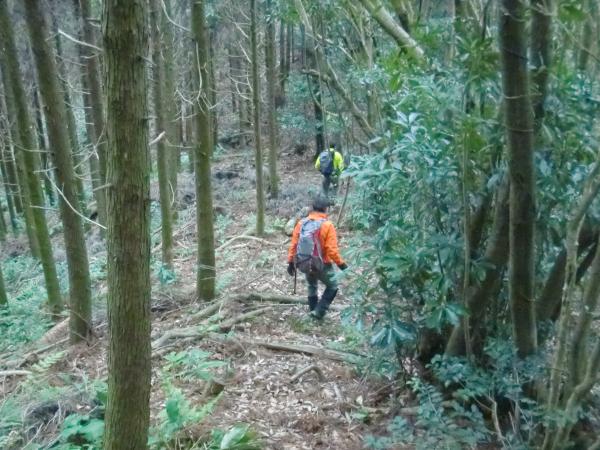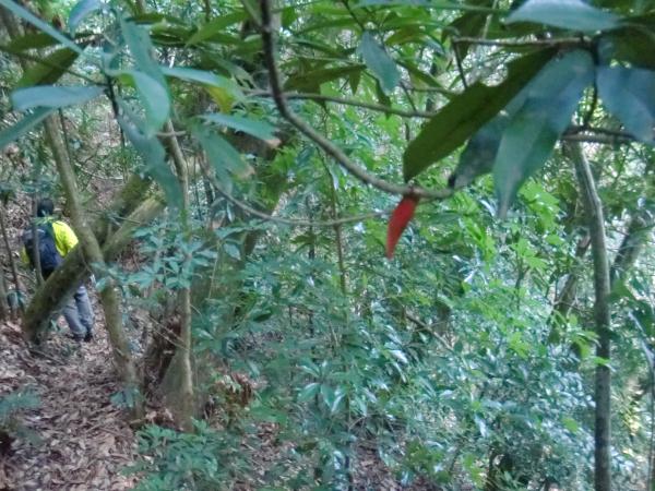 探し出すまでにちょっと時間を要しましたが、発見後は赤テープがしっかりとあった為、迷わずに進むと尾根を歩く森林の爽やかコースで、磯間の岩稜だらけのコースとは思えないギャップにビックリでした。