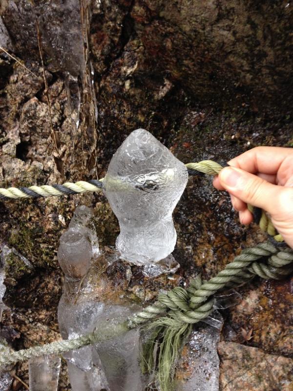 小雪が舞っておりましたが、寒さが少し緩んだせいか、前回よりも氷が少なくなっていました。寒さが続いてくれたらもっと氷柱も育っていたのに、ちょっと残念。でも、氷を目当てにたくさんの登山者が訪れており、初めての方には良い景色が見られたようです。もう少し寒くなる2月に期待です。