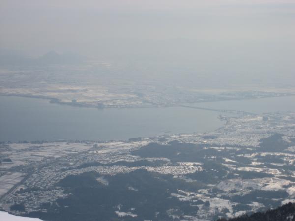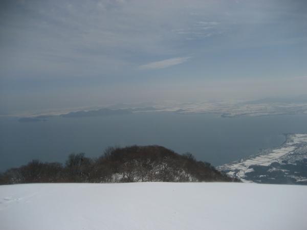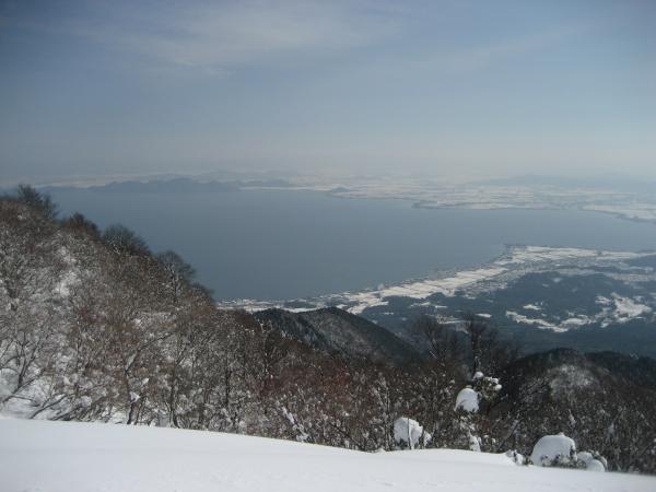 琵琶湖を眺めながらスノーシューで優雅ですが、なかなか歩きごたえあります。