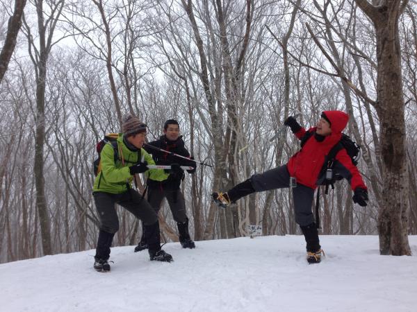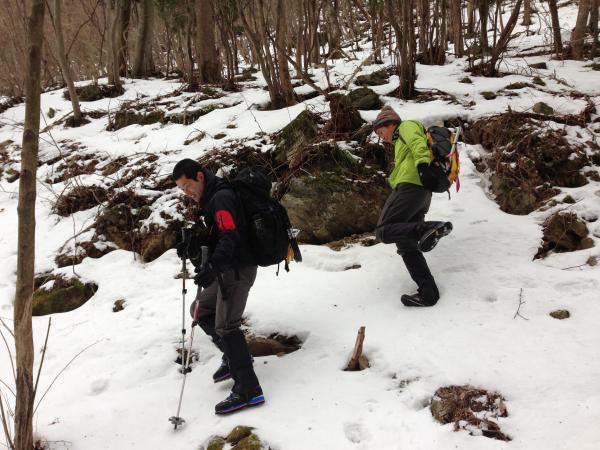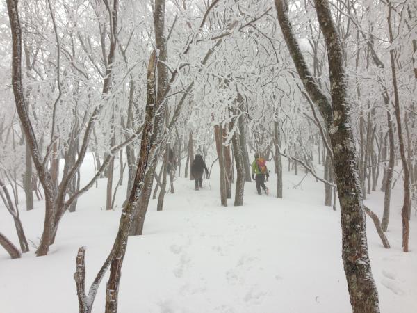 柔らかい雪の上はワカン、硬い雪の斜面は12本爪アイゼンにお世話になりました!