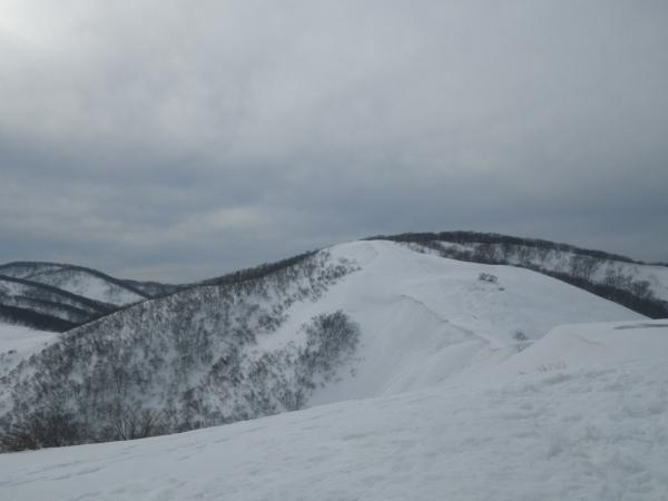 稜線は雪庇もあるので、視界が悪い時には注意が必要。