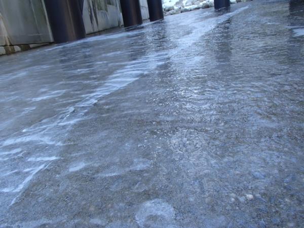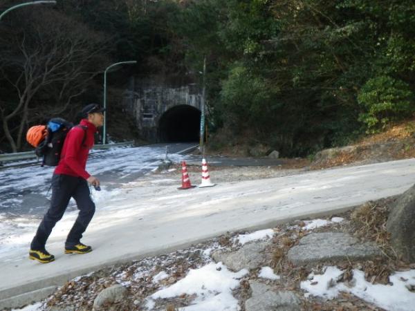 今回は一般登山道からの登山でもいいかと歩いていくと、雫が滴っているものの日蔭は凍っています。そして藤内沢出合へ。ハイ、ばっちり凍ってました!途切れているところはありません。