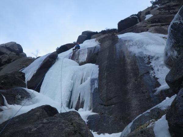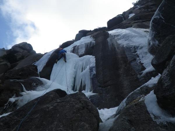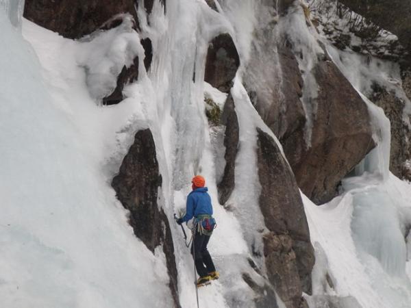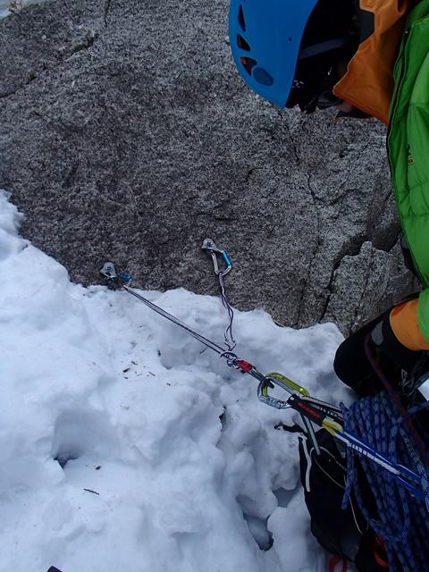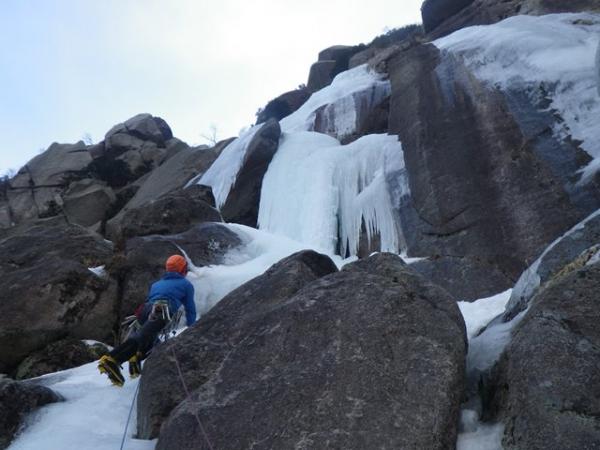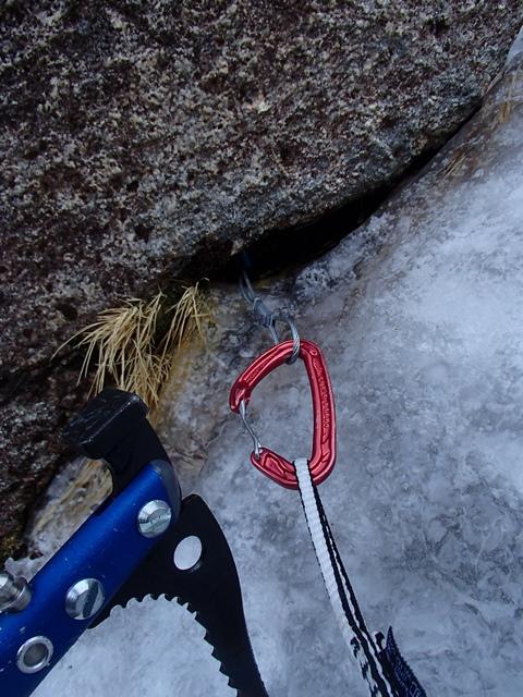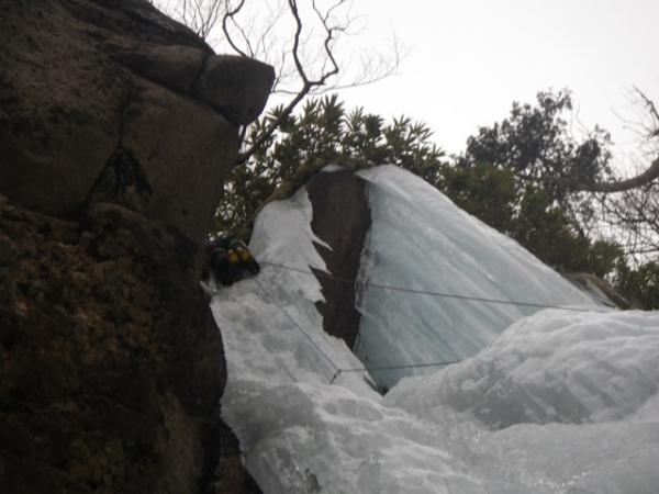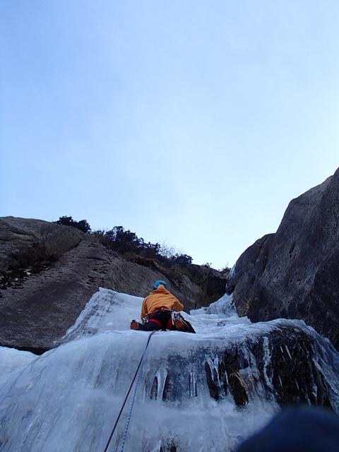 傾斜が落ち、楽しんで登れるピッチです。途中、クラックが露出している箇所があったのでリードはそこにナッツをきめてました。氷が少なかったからでしょうか、ラッキーなこともあるもんです。