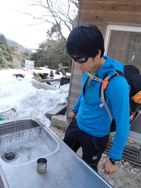 取付きまでいってみるとかなり氷が薄いです。シャワーも出てます。しかしテンションは上がったまま、では行ってみましょう!